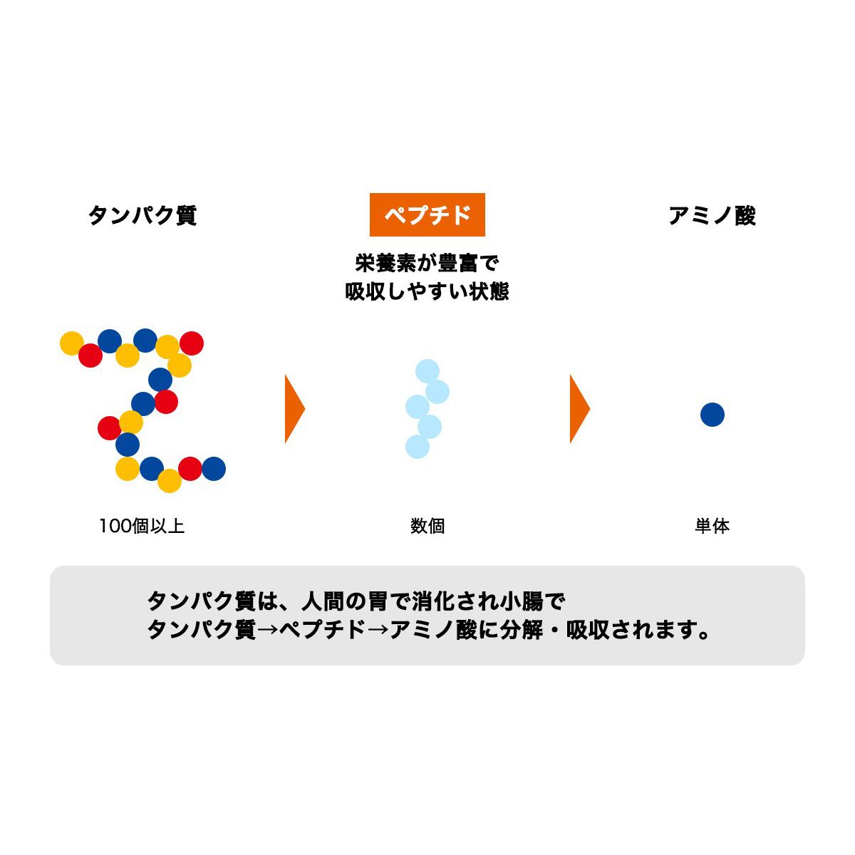 ペプチドとは、たんぱく質が分解されてアミノ酸として、吸収される一歩手前の分子結合の事です。アミノ酸が数個から10個程繋がっており、分子が小さいため栄養吸収に極めて優れています。